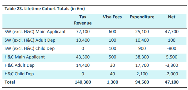 This table summarises the estimated lifetime totals for migrants arriving in 2022/23.